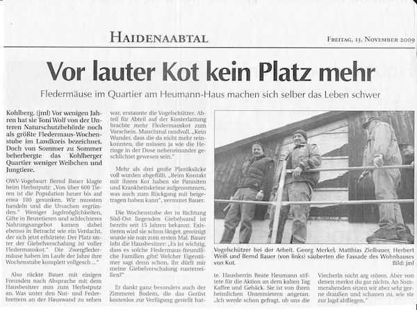 Zeitungsausschnitt aus der Tagespresse und das Anwesen Heumann in der „Froschau“. Laut Toni Wolf von der Unteren Naturschutzbehörde das grösste bekannte Fledermausvorkommen im Landkreis Neustadt a.d.Waldnaab.