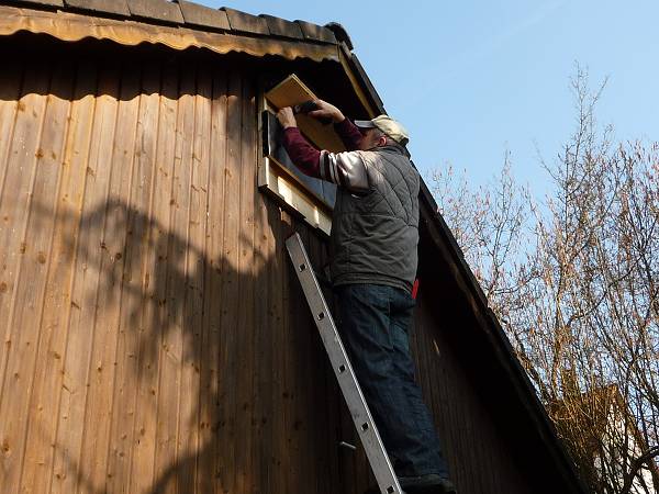 Reinigung der Giebelverkleidung für die heimischen Fledermäuse am Anwesen Heumann