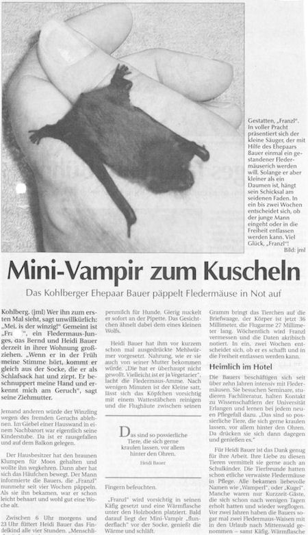 Bericht im Neuen Tag am 18.08.2010. „Mini-Vampir zum Kuscheln“
