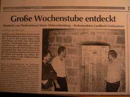 Zeitungsausschnitt und Foto der Beteiligten an der Errichtung der Infotafeln.